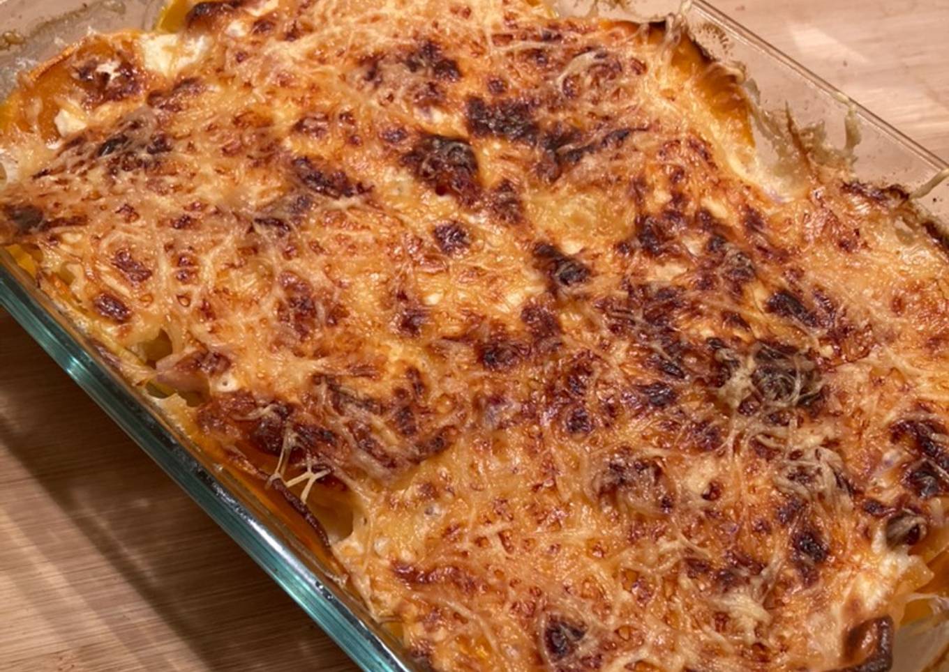 pour changer du velouté, j’ai fais un gratin de butternut au chèvre!