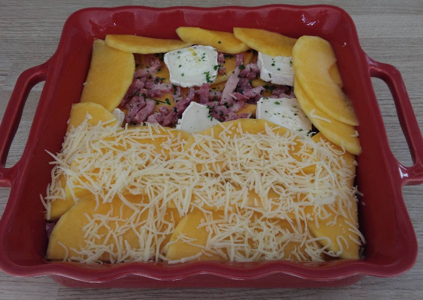Steps to make to make Gratin de Butternut Chèvre & Lardons