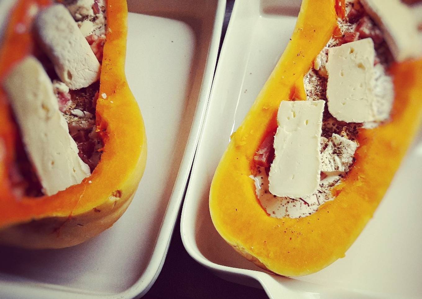 - Creuser la courge un peu dans sa longueur pour y mettre la garniture.