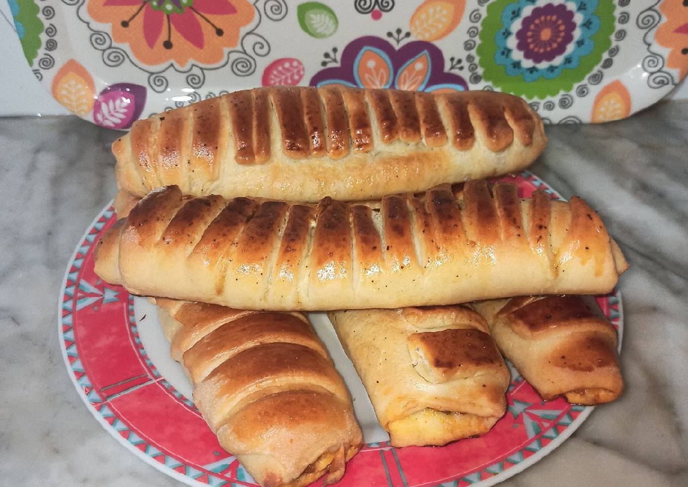 - Soyez prudent quand vous enroulez pour que la farce ne sorte pas sur les côtés une fois enroulés pincé bien les côtés dorés soufflés avec les jaunes d'œufs qui restent et enfourner à 180 degrés pendant 25 minutes en surveillant la cuisson.