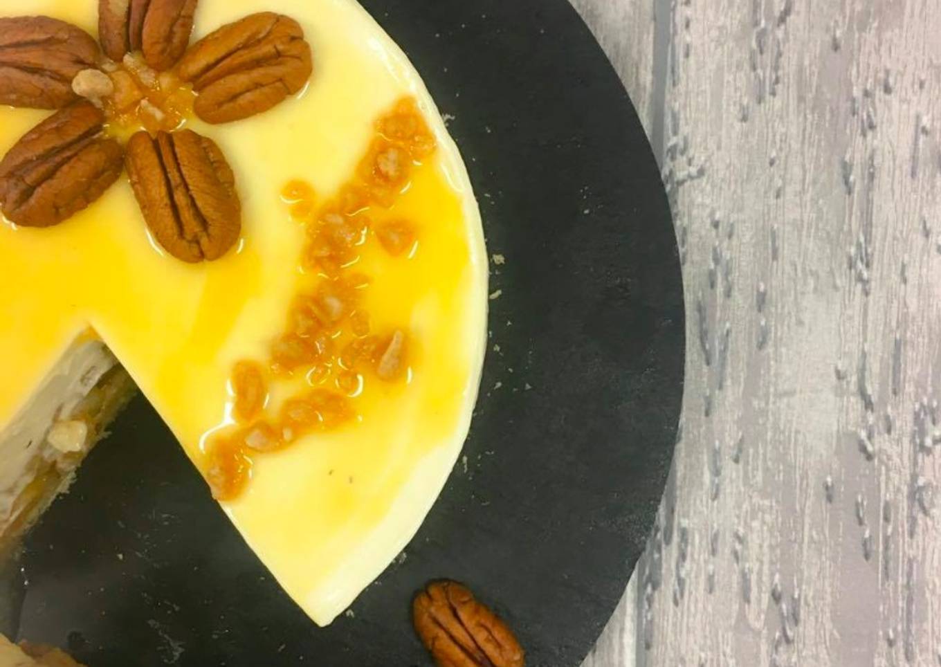 - Montage : Mettre du rhodoïd sur tout le tour du cercle. Mettre le sablé canadien au fond. Déposez de la crème cheese sur le contour du cercle. Mettre la compotée de pomme et recouvrir complètement avec la crème restante. Lissez bien et réservez au frais minimum 6h, idéalement une nuit. Décorez comme vous le souhaitez ! (ici sirop d'érable, pépites de sucre d'érable, et noix de pécan.