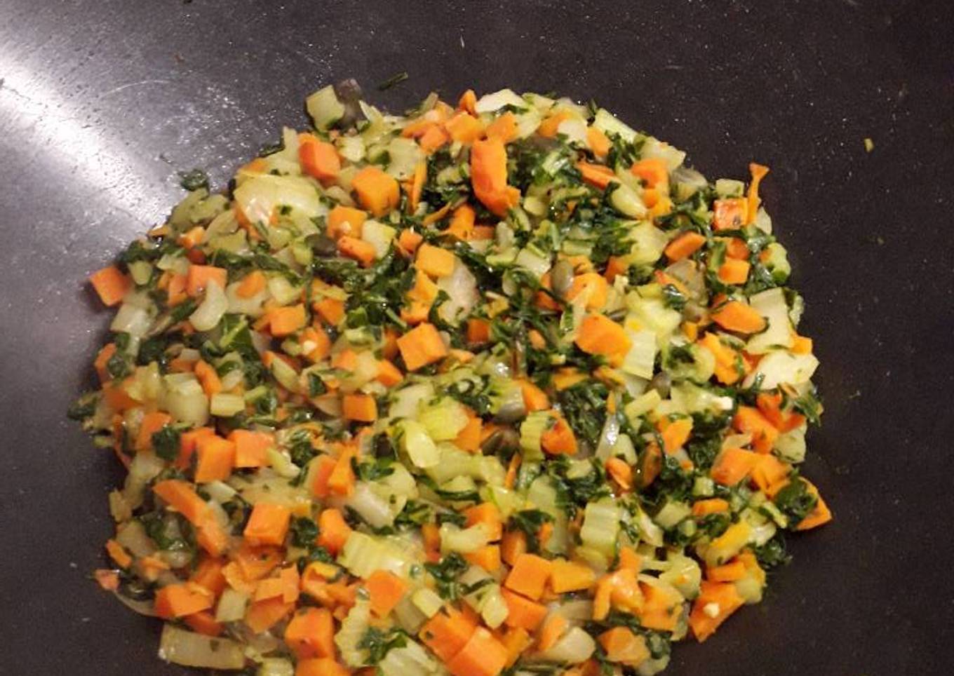 - Faire revenir les légumes à l'huile d'olive, saler et poivrer.