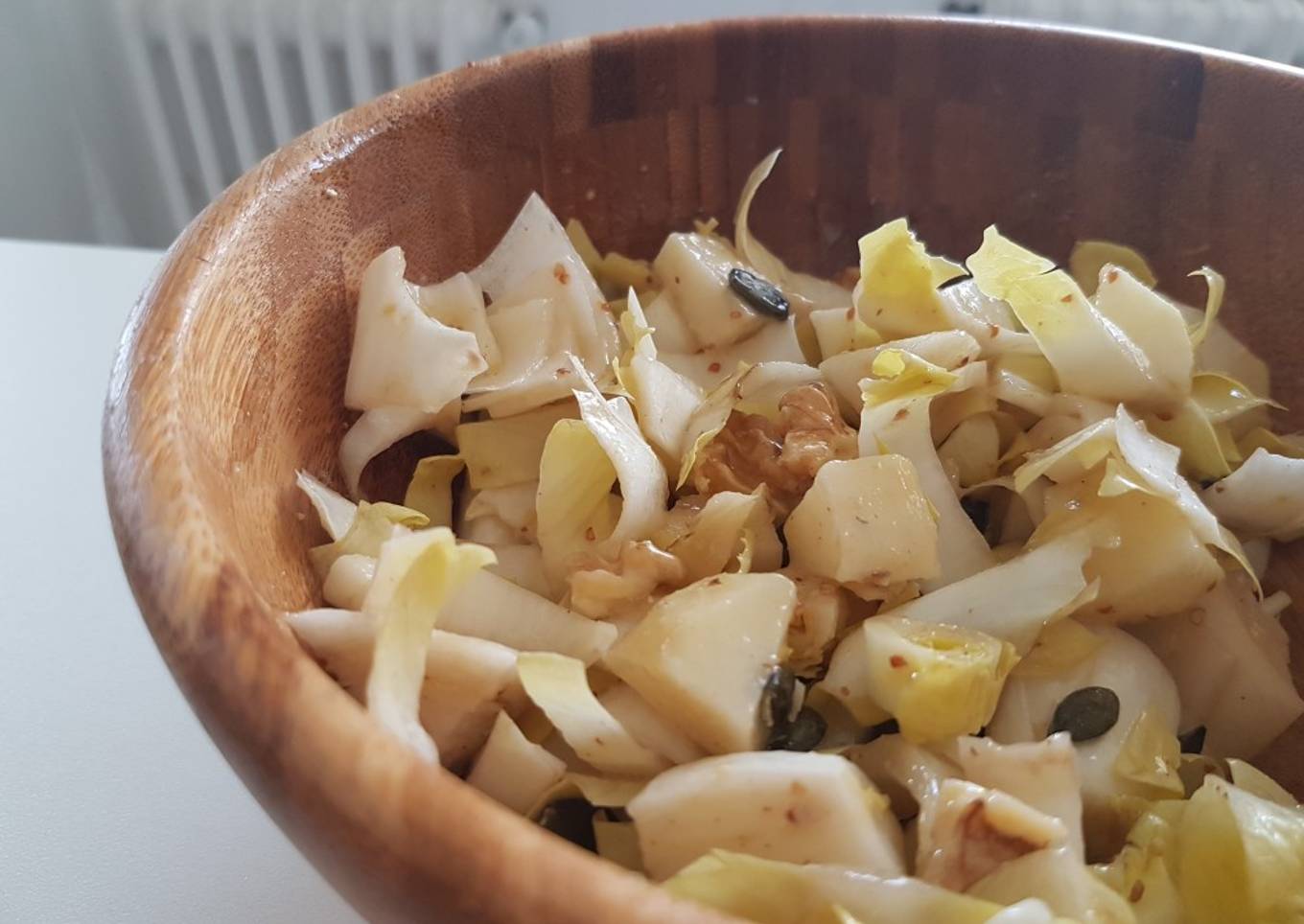 J'aime la salade d'endive qu'on peut agrémenter avec ce qu'on aime.