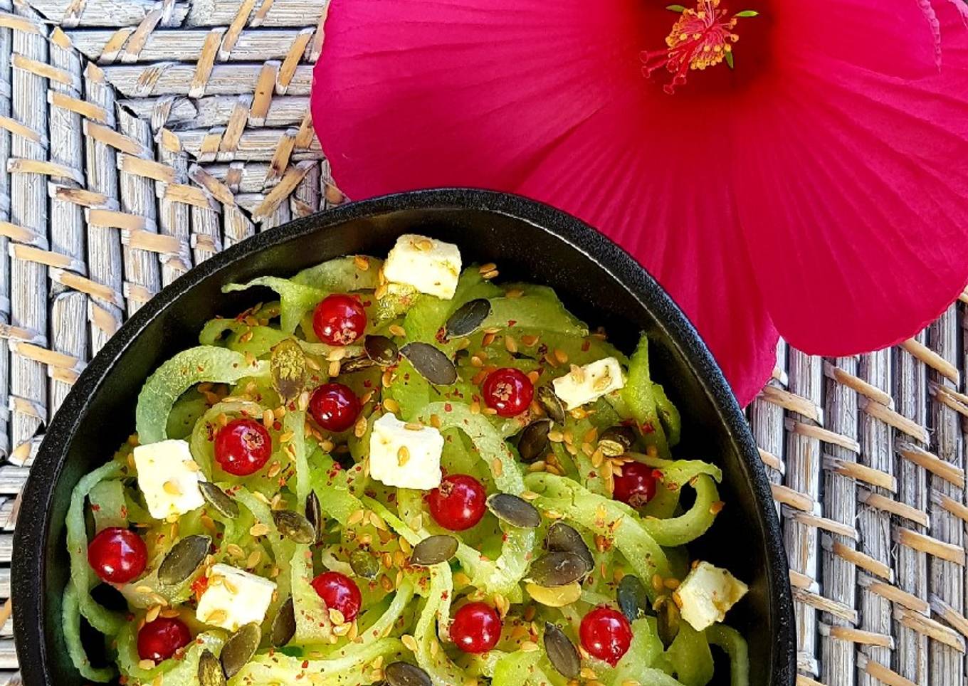 Hello everybody, I hope you're having an amazing day today. Today, we're going to make a special dish, Tagliatelles de concombre. It is one of my favorites. For mine, I'm gonna make it a little bit tasty. This will be really delicious.