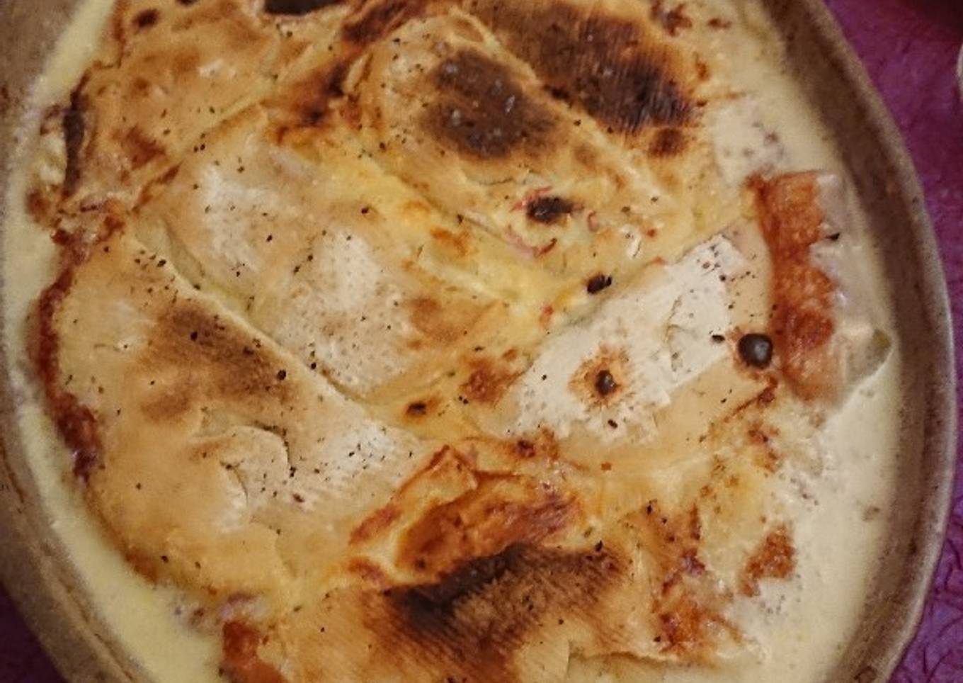 - Couper le reblochon en deux et couvrir le plat. Mettre au four pas trop fort jusqu'à dorer en hait